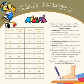 Caracteristicas: - Marca: Mini Pé - Indicado: Dia a Dia - Material: Sintético - Solado: PVC com led que piscam do lado externo da sola - Tipo de Forro: Têxtil - Palmilha: E.V.A., forrada e removível - Led: Não recarregável