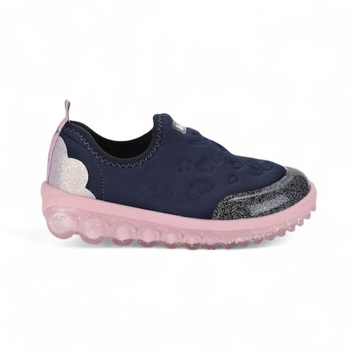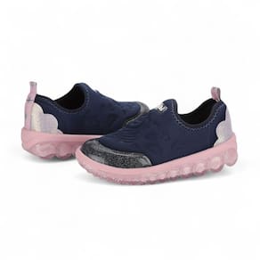 Nosso modelo na cor marinho com rosa, adornado com um encantador glitter no solado e detalhes que remetem ao universo dos unicórnios, apresenta um design moderno e sonhador, ideal para acompanhar as pequenas em todas as suas aventuras. Confeccionado em elastano, um material respirável e de fácil limpeza, este tênis oferece um ajuste excelente ao pé, garantindo conforto durante todo o uso. O solado inovador com rolamentos segue os movimentos do pé, oferecendo um design ainda mais atual e criativo. Possui a palmilha Fisioflex, que é macia e proporciona a sensação de andar descalço, assegurando conforto extremo para as crianças.