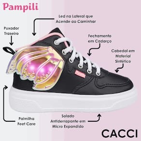 Com led diferenciado no cabedal que acende conforme o caminhar. Ah, o tênis possuí escrita em braile nas laterais indicando o lado direito e esquerdo, facilitando o calce para meninas cegas ou com baixa visão!