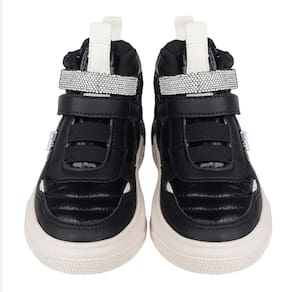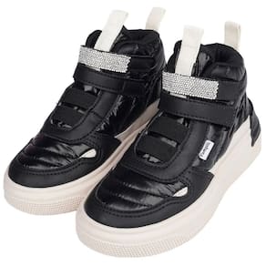 Tênis em material laminado, com costuras matelassê e detalhe de manta de strass, sofisticado para as meninas que amam andar no estilo!