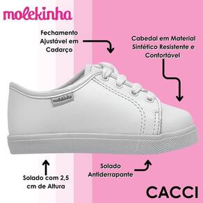 O Tênis Molekinha é a combinação ideal de estilo, conforto e praticidade para acompanhar a rotina das pequenas com segurança e muito charme. Com um visual cheio de brilho e personalidade, ele é perfeito para meninas que gostam de estar sempre bem vestidas sem abrir mão do conforto. Um modelo versátil, que vai bem com diferentes produções e pode ser utilizado desde a escola até os passeios e momentos de lazer.