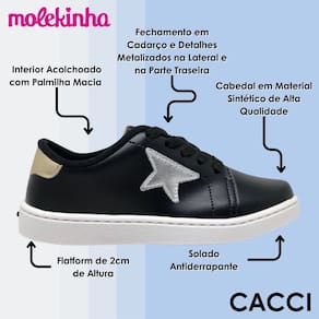 O Tênis Flatform Estrela da Molekinha é perfeito para meninas que adoram estar na moda sem abrir mão do conforto. Com um design moderno e detalhes que encantam, ele é a escolha ideal para compor looks cheios de estilo. Seja no dia a dia ou em momentos especiais, esse tênis vai garantir que sua pequena esteja sempre linda e confortável!