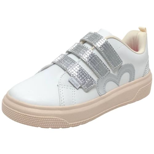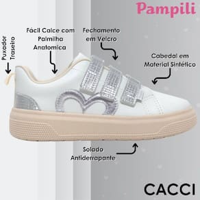Tênis feminino em sintético branco, com recortes em material texturizado prata sendo um deles em forma de coração, um modelo atemporal e moderno para a menina arrasar! Tênis com forro interno em tecido que auxilia na absorção do suor e espuma comfy no calcanhar e palmilha anatômica para um super conforto ao caminhar. Calce fácil com fechamento através Tira Altocolante, dando autonomia para a menina. Tênis infantil versátil com solado inovador em micro expandido, material leve e flexível, além da resistência térmica e alto desempenho antiderrapante. Ah, o tênis possuí escrita em braile nas laterais indicando o lado direito e esquerdo, facilitando o calce para meninas cegas ou com baixa visão!