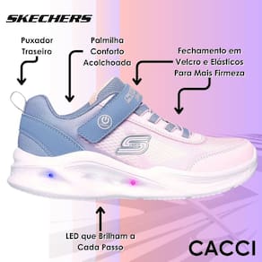 Garanta o tênis que une conforto, praticidade e aquele toque de magia que toda criança adora! O Skechers Sola Glow é o brilho que faltava nos passinhos do seu pequeno.