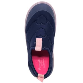 Tênis feminino infantil em lycra com bordados exclusivos de coração, casual e moderno para os passeios! Tênis feminino com forro interno que auxilia na absorção do suor e palmilha anatômica para maior conforto ao caminhar. Tênis calce fácil sem amarração, basta colocar o pezinho, dando autonomia para as meninas e facilitando o calce para as mamães. Tênis de solado emborrachado em TR ECO, material que possuí em sua composição 20% de matérias primas vindas de fontes renováveis. O solado possuí escrita em braile indicando o lado direito e esquerdo para meninas cegas ou com baixa visão!