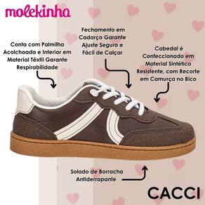A palmilha acolchoada proporciona maciez e suavidade, enquanto o interior em material têxtil garante respirabilidade, mantendo os pés frescos e confortáveis por mais tempo. O fechamento em cadarço permite um ajuste seguro e fácil de calçar, tornando o uso prático e garantindo firmeza durante as brincadeiras e passeios.