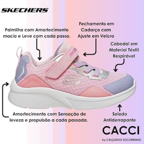 Cor e praticidade com estilo esportivo. O tênis infantil Skechers Bright Retro combina atitude e conforto com um visual que traz um mix especial de cores. Este tênis infantil menina tem inspiração nos tênis jogger, com destaque para o cabedal de tecido mesh que proporciona respirabilidade, leveza e maciez. Para deixar o calce mais fácil, o Skechers Bright Retro conta com cadarço elástico e puxador traseiro. Do dia a dia na escola às horas de lazer, é perfeito para acompanhar sua pequena. Combine com calça jeans, short ou vestido infantil para a sua menina arrasar. Peça já!