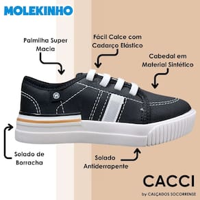 Possui cadarço elástico no cabedal, o que garante praticidade e um ajuste perfeito aos pezinhos. A base deste tênis é um solado sintético emborrachado antiderrapante, projetado para proporcionar uma excelente tração em uma variedade de superfícies. Seja correndo no parquinho ou explorando novos caminhos, o Tênis Molekinho Infantil Neo Preto está pronto para acompanhar cada passo da jornada. Este tênis é mais que apenas um calçado, é o parceiro de aventura que seu pequeno precisa.