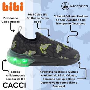 O solado antiderrapante proporciona segurança em cada passo, enquanto as luzes de LED que piscam ao caminhar tornam as brincadeiras ainda mais animadas. Com estampa divertida de dinossauro e acabamento verde vibrante, esse tênis é a escolha ideal para transformar cada passo em uma grande aventura.