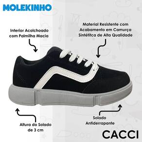 Este modelo da Molekinho é a escolha ideal para quem busca um calçado estiloso, resistente e confortável para acompanhar o ritmo agitado das crianças. Com design moderno e detalhes marcantes, ele combina perfeitamente com diferentes ocasiões do dia a dia, seja para um passeio em família ou momentos de diversão com os amigos. O visual é atual, com linhas que transmitem personalidade e atitude desde os primeiros passos.