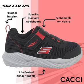 O tênis infantil masculino Skechers Nitro Sprint foi pensado para acompanhar a energia e agitação das crianças, unindo conforto, leveza e praticidade. Ideal para escola, brincadeiras e passeios, ele garante calce fácil e seguro, com palmilha acolchoada e solado flexível que acompanha o movimento natural dos pés. Perfeito para quem busca um calçado resistente e confortável para o dia a dia cheio de aventuras e diversão.