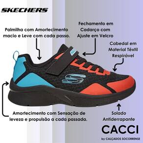 Cor e praticidade com estilo esportivo. O tênis infantil Skechers Microspec combina atitude e conforto com um visual que traz um mix especial de cores. Este tênis infantil menino tem inspiração nos tênis jogger, com destaque para o cabedal de tecido mesh que proporciona respirabilidade, leveza e maciez. Para deixar o calce mais fácil, o Skechers Microspec conta com cadarço elástico e puxador traseiro. Do dia a dia na escola às horas de lazer, é perfeito para acompanhar seu pequeno. Opção versátil para combinar com calças e bermudas jeans, sarja ou moletom. Peça já!
