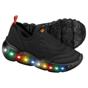 Com design arrojado e cor preta versátil, esse modelo combina com qualquer look e traz uma pegada esportiva que os meninos adoram. As luzes de LED que piscam a cada passo transformam qualquer caminhada em um verdadeiro espetáculo, estimulando a criatividade e deixando as brincadeiras ainda mais animadas. E o melhor: são até 200 mil ciclos de luz sem precisar carregar!