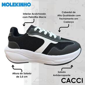 Com altura do solado de 3,5 cm, o tênis oferece excelente equilíbrio entre conforto e estilo, sendo ideal para o dia a dia, passeios e momentos de lazer. Um calçado pensado para acompanhar o ritmo das aventuras infantis com muito conforto e durabilidade.