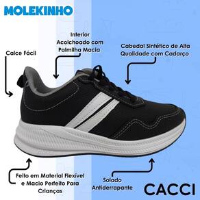O Tênis Molekinho Casual é a combinação perfeita entre estilo e conforto para o dia a dia dos meninos. Com um visual moderno e esportivo, ele traz um design prático que combina com diversas ocasiões, seja para passeios, idas à escola ou momentos de lazer. Os detalhes sutis e bem trabalhados adicionam charme ao visual sem abrir mão da leveza que os pequenos precisam para se movimentar com liberdade.