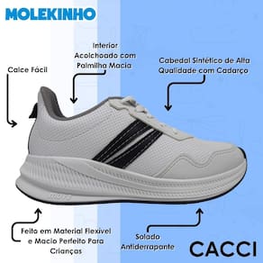 O Tênis Molekinho Casual é a combinação perfeita entre estilo e conforto para o dia a dia dos meninos. Com um visual moderno e esportivo, ele traz um design prático que combina com diversas ocasiões, seja para passeios, idas à escola ou momentos de lazer. Os detalhes sutis e bem trabalhados adicionam charme ao visual sem abrir mão da leveza que os pequenos precisam para se movimentar com liberdade.