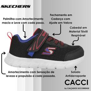 A criançada também merece todo o conforto do Tênis Skechers Infantil Comfy Flex. Seu cabedal é feito em material têxtil e mesh, proporcionando respirabilidade. A palmilha Goga Mat é acolchoada e anatômica, absorvendo os impactos das corridas, pulos e brincadeiras dos pequenos.