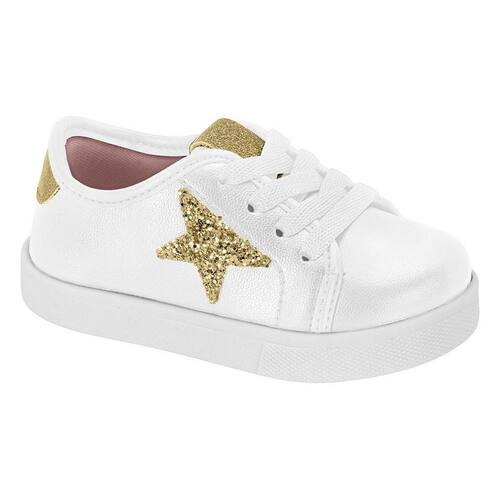 Tênis Infantil Molekinha Napa Branco com Detalhes de Glitter Dourado