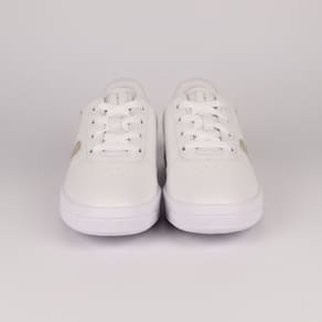 Tênis Infantil Napa Menina Via Vip Cadarços VV3810: conforto e estilo para os pequenos! Confeccionado em material sintético napa de alta qualidade, este tênis oferece durabilidade e fácil manutenção, perfeito para o dia a dia agitado das crianças. O design clean em branco com detalhe dourado metalizado destaca a personalidade delicada e moderna das meninas, ideal para combinar com diversas roupas.