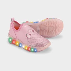 O Tênis Infantil com Luz de LED é confeccionado com materiais de alta qualidade e palmilha Fisioflex, este tênis garante conforto e durabilidade. Na cor rosa e com estampa de unicórnio, possui aplicação de brilhos e é confeccionado em elastano, fácil de calçar e se ajusta perfeitamente ao pé. A palmilha Fisioflex promove a sensação de andar descalço e proporciona ainda mais conforto, estimulando a percepção sensorial e as terminações nervosas, o que contribui para o desenvolvimento natural e saudável das crianças. O tênis possui luzes de LED que piscam a cada passo e tornam as brincadeiras mais divertidas. Com capacidade de duzentos mil ciclos, não há necessidade de carregamento.