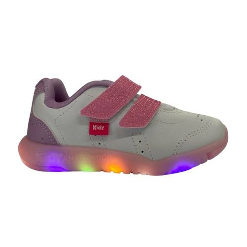 Tênis Kidy Flex Light Infantil Branco/Rosa luzinha pisca pisca 23 -