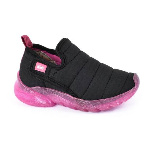 Tênis Kidy Flex Light Infantil Calce Fácil Preto Rosa 334557