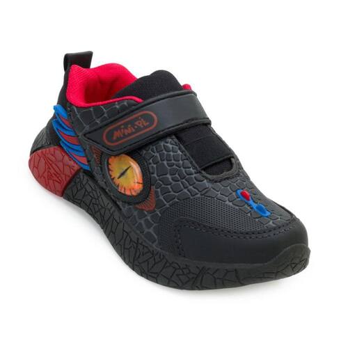 Nome: Tênis King Kids Dinossauro Infantil MP22-MP2012S. Gênero: Menino. Indicado Para: Moda-Dia a Dia. Estilo da Peça: Lisa. Ocasião: Casual. Material Externo: Alternativo personalizado dinossauro, detalhes em tecido. Material Interno: Têxtil almofadado. Fechamento: Elástico, fixador aderente. Palmilha: EVA forrada e removível. Solado: Borracha. Puxador na traseira. Peso do Produto: 643 g (o peso varia de acordo com a numeração). Garantia do Fabricante: Contra defeito de fabricação. Origem: Nacional. Código Produto: 03023905. Marca: King Kids.