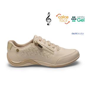 Tênis Kolosh Calce Fácil Zíper Palmilha Gel Elástico Confort - 34 - Bege