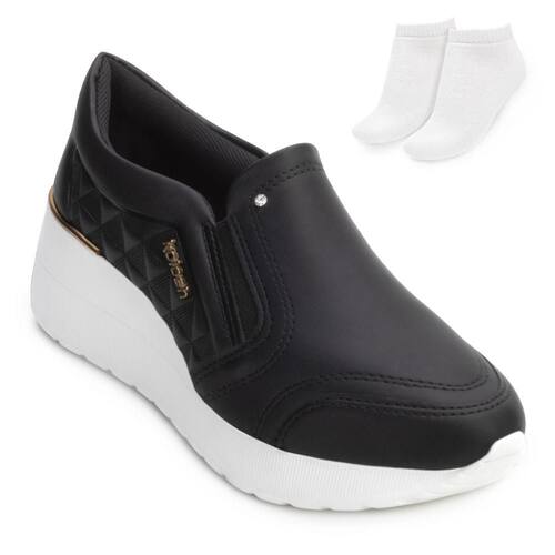 Nome: Tênis Kolosh Slip On Upper e Meia KL24-C3565. Gênero: Feminino. Indicado Para: Moda-Dia a dia. Estilo da Peça: Casual. Ocasião: Dia a dia. Material Externo: Alternativo. Material Interno: Têxtil acolchoado. Detalhes: Texturas nas laterais, aplicação de pedra strass no cabedal. Ajuste: Elástico nas laterais, calce fácil. Palmilha: Forrada e anatômica. Altura do Solado: Médio, 6 cm. Solado: Anabela, antiderrapante. Peso do Produto: 800 g (o peso varia de acordo com a numeração). Garantia do Fabricante: Contra defeito de fabricação. Origem: Nacional. Código Produto: 02024818. Marca: Kolosh. Acompanha um par de meias tamanho 33 ao 38. Composição: 83 % Algodão. 12 % Poliéster. 05 % Elastodieno.