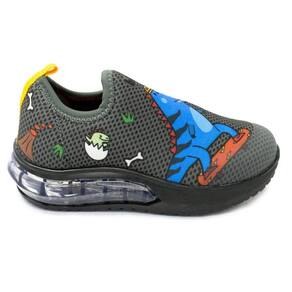 Tênis Infantil Masculino de Luz Space Wave 3.0 Estampado esta com todo o conforto da Bibi e que alegra cada momento com um show de luzinhas, o solado é composto com leds multicoloridos que piscam ao tocar no chão. Possui estampa de dinossauros super fofinhos e radicais! O tênis infantil é cheio de tecnologia e conforto, o Space Wave 3.0 é desenvolvido em elastano, o que o torna flexível, facilitando o calce e o ajuste aos pezinhos. Cada material utilizado, para produzir o tênis infantil, foi testado para que os calçados sejam livres de materiais que causam danos à saúde da criança, garantindo a Proteção não-tóxica da Bibi. A exclusiva tecnologia da Palmilha Fisioflex tem a capacidade de absorver e amortecer o impacto dos pezinhos ao chão, porque possui uma espuma de alta densidade. O toque dos pézinhos com o chão tem papel importante no desenvolvimento natural e saudável das crianças, para que isso aconteça, a palmilha conta com pipetas que simulam estímulos sensoriais, auxiliando no desenvolvimento, da mesma forma que andar descalço.
