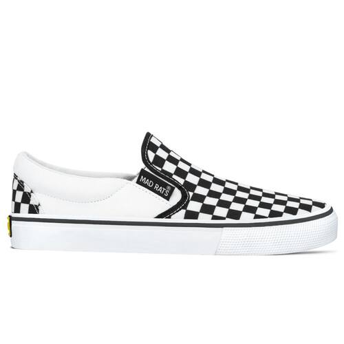 O Tênis Mad Rats Quadriculado Slip On Branco é perfeito para looks casuais e despojados, combinando bem com jeans, shorts e até calças de alfaiataria para um estilo mais descontraído.