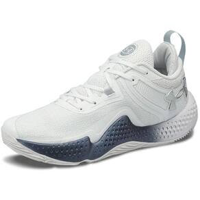 Traseiro conta com aplicação em TPU que envolve o calcanhar. O logo estilizado se mescla com os detalhes em brilho, entregando um visual mais ousado.