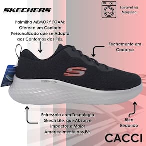 Entressola com tecnologia Skech Lite : Leveza excepcional e amortecimento eficiente que reduz impactos, ideal para movimentos naturais e suaves em qualquer terreno.