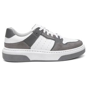 Tênis Masculino Couro Casual Fechamento Cadarço Moderno - 39 - Cinza