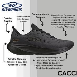 Já o cabedal conta com elementos em degradê para compor o visual do modelo. Possui tecido Jacquard bicolor com perfuros para auxiliar na transpiração, detalhes em high frequency com visual de alto relevo, vista em costura zig e cordão com função de passador para o atacador, feito em poliéster texturizado. Apresenta puxador traseiro em fita para auxiliar no calce e forro em tecido poliéster com espuma. Além disso, possui palmilha plana em poliéster e EVA, com aplicação gráfica. Tecnologias: Evasense -A tecnologia da Olympikus em EVA para máxima maciez e conforto absoluto.