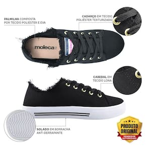 O tênis Moleca 5667.322 tem o cabedal em lona com as bordas desfiadas deixando dando um visual mais divertido e perfeito para o dia a dia. O fechamento é em cadarço que facilita o ajuste. Palmilha plana de EVA revestida de tecido para o máximo de conforto. O solado é de material TR antiderrapante, garante mais segurança e estabilidade ao caminhar.