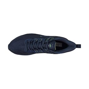 O cabedal em tecido jacquard com arte gráfica orgânica oferece visual moderno e respirabilidade, enquanto os detalhes em laminado com tecnologia High Frequency aumentam a durabilidade e o estilo do calçado.
