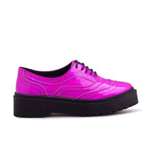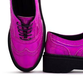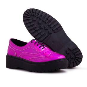 Tenis Oxford Plataforma Couro Feminino Metalizado Cadarço Solado Borracha Bico Redondo - 37 - Rosa