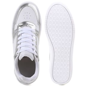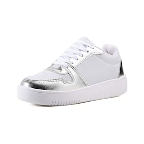Tênis confeccionado com material sintético na cor branco com detalhes em material sintético metalizado e palmilha confort. Ideal para quem busca usar no dia a dia um calçado confortável e estiloso.