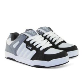 O Tênis Qix Square é um modelo clássico de skate que está de volta em uma versão retrô. Ele é feito em couro e borracha, com um design robusto e moderno. O tênis é confortável e oferece boa performance para o skate. Ele está disponível nas cores cinza, preto e branco.