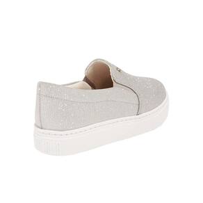 Tênis slip on confeccionado em tecido metalizado, modelo de solado baixo emborrachado com o logo da marca na parte traseira do tênis, possui elásticos nas laterais para facilitar o calce, proporcionando conforto e um toque despojado ao seu visual.