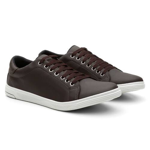 Tenis Sapatenis Masculino Cadarço Palmilha Macia Confortavel Calce Facil Moderno Dia a Dia - 37 - Marrom Cacau