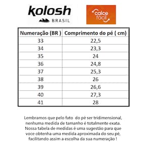 A praticidade é essencial para nosso dia a dia, não é? Pensando nisso a Kolosh criou esse modelo de Calce Fácil, com cadarço elástico. Além de prático e versátil, é macio e confortável, perfeito para todos os momentos do seu dia! Possui uma fôrma projetada para o máximo conforto, com forro interno em tecido.