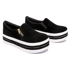 Tênis Sapato Sapatênis Feminino Salto Plataforma Com Zíper Confortável - 34 - Preto