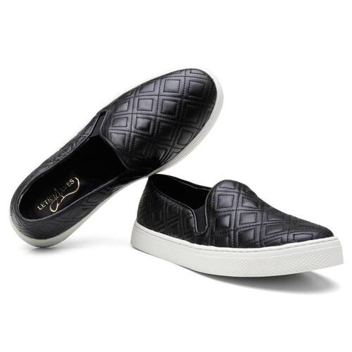 Tênis Slip On Feminino Couro Matelassê Conforto Versátil - 39 - Preto