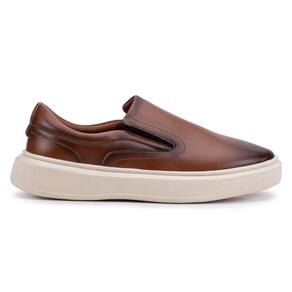 Tênis Slip On IateMasculino Couro Confortável Calce Fácil - 42 - Marrom Cacau