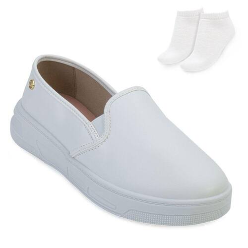 Nome: Tênis Slip On Moleca e Meia ML23-57861. Gênero: Feminino. Indicado Para: Moda-Dia a Dia. Ocasião: Casual. Material Externo: Alternativo. Material Interno: Alternativo. Ajuste: Elástico nas laterais. Palmilha: EVA forrada e macia.Entressola: Com 3,5 cm de altura. Solado: Em borracha antiderrapante. Detalhes: Aplicação do pin da marca na lateral. Peso do Produto: 822 g (o peso varia de acordo com a numeração). Garantia do Fabricante: Contra defeito de fabricação. Origem: Nacional. Código Produto: 02024572. Marca: Moleca. Acompanha um par de meias tamanho 33 ao 38. Composição: 83 % Algodão. 12 % Poliéster. 05 % Elastodieno.