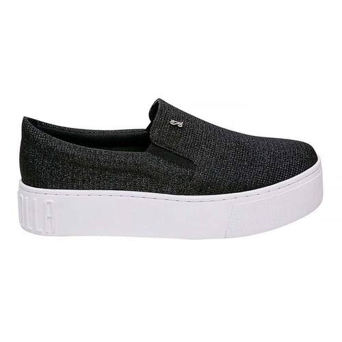 Sobre a Marca - Santa Lolla Com a missão de aliar conforto e informação de moda para mulheres de todos os estilos e idades, a Santa Lolla é uma das maiores marcas de calçados e acessórios do país. Com 20 anos no mercado, a marca firmou-se como uma das principais referências de moda no Brasil, antecipando e criando tendências. Com um time de estilo afiado que cria cerca de cinco coleções por ano, mais de sete mil itens e novos produtos, o público está cada vez mais ávido por novidades e em busca de peças fashion. Desde acessórios e calçados essenciais para o guarda-roupas de qualquer mulher, até peças mais trendy e statement. Slip on, é a nova moda no seu dia a dia. o modelo slip on glitter, possui sola alta e elástico nas laterais para maior conforto. ideal para usar com calças capri, saias e vestidos.