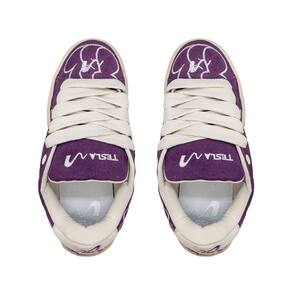 O Tênis Tesla Hertz ART Purple com detalhes em bege representa a fusão entre arte urbana, autenticidade e atitude street. Seu cabedal em camurça premium na tonalidade roxa, combinado com grafite bordado em alto contraste e acabamentos em bege, cria uma identidade visual marcante, criativa e fora do comum. Cada detalhe foi pensado para transformar o tênis em uma verdadeira peça de expressão pessoal.