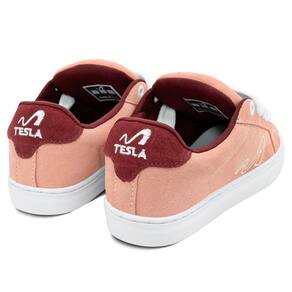 Hertz: O tênis Hertz da Tesla Footwear é um modelo inspirado nos tênis clássicos dos anos 2000, com um estilo "OLD" e referências ao verdadeiro tênis de skate. Ele é conhecido por seu bico curto e largo no pé, bem acolchoado, leve e confortável. O Hertz é revestido de camurça de alta resistência para evitar desgaste rápido ao entrar em contato com a lixa do skate.